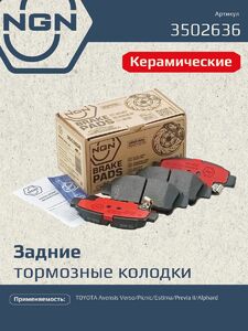 Колодки тормозные керамические задние NGN 3502636. Для TOYOTA Avensis Verso 01 Picnic 01-09 Estima/Previa II 00-06 Alphard 03-08