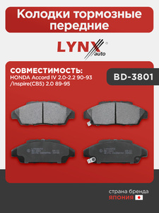 Колодки тормозные передние LYNXauto BD-3801. Для HONDA Хонда Accord(Аккорд) IV 2.0-2.2 90-93/Inspire(CB5) 2.0 89-95