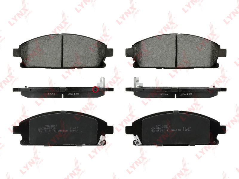 Колодки тормозные передние LYNXauto BD-5729. Для: NISSAN НИССАН Elgrand(E51) 2.5-3.5 02-10 / Presage(U31) 2.5-3.5 03-06 / Terrano(Террано)(R50) 3.3 99-00 / X-Trail(Икстреил)(T30) 2.0-2.5d 00-13