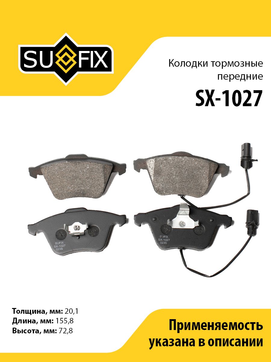 Колодки тормозные передние SUFIX SX-1027. Применение: AUDI A4 1.0-3.0TD 04-07/ A6 2.0-3.2 04> / A8 3.7-4.2 02-10. ОЕ: 4E0698151F; 4E0698151M; 4F0698151A; 8E0698151G; 8E0698151L .
