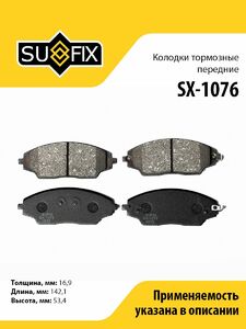 Колодки тормозные передние SUFIX SX-1076. Применение: CHEVROLET Aveo 1.2-1.6 11> / Cobalt 1.5 14>. ОЕ: 95231012.