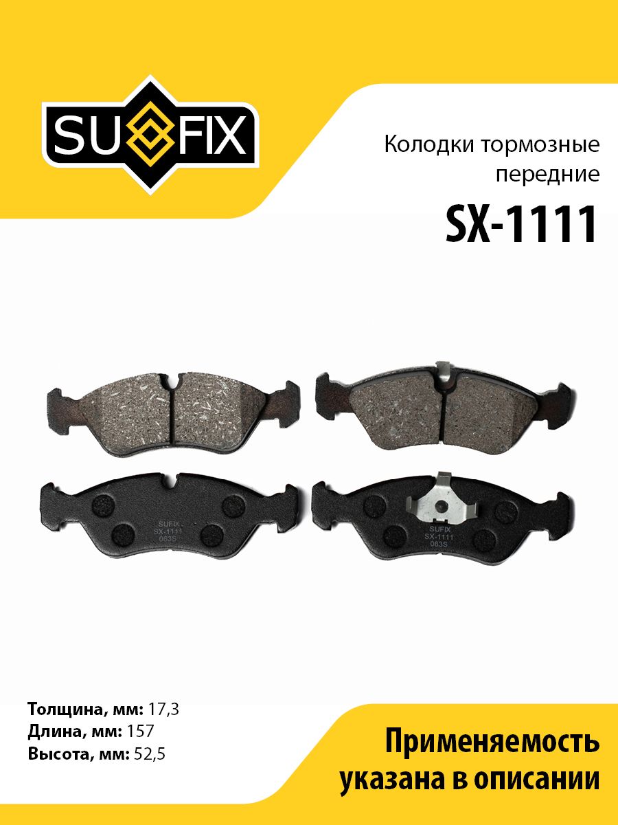 Колодки тормозные передние SUFIX SX-1111. Применение: DAEWOO Nexia/Lanos/Espero, OPEL Astra >98/Omega A/Vectra A/B/Kadett >93. ОЕ: 1605454; 1605746; 1605789; 1605808; 11046152; 90297770; 90398760; 90399495; 93192637; 96281939; 11046952012 .