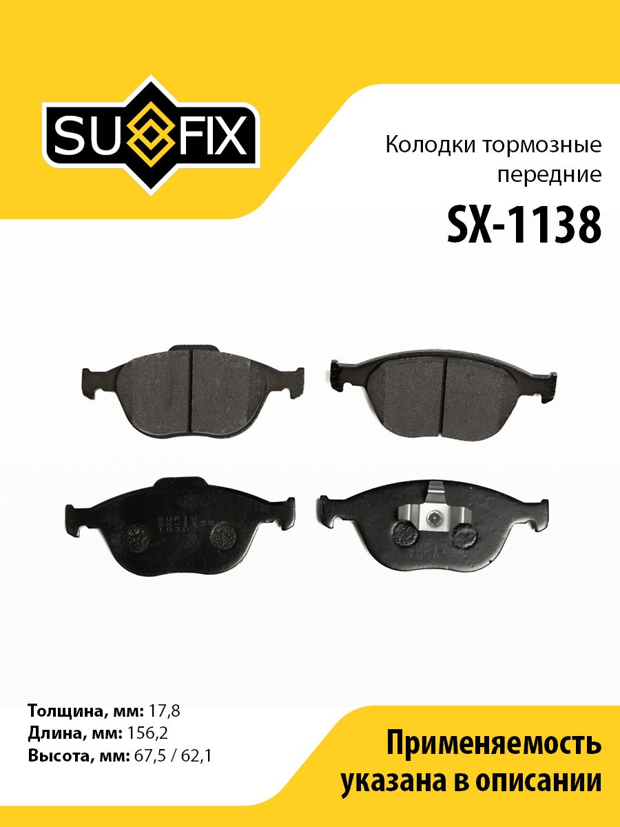 Колодки тормозные передние SUFIX SX-1138. Применение: FORD Tourneo Connect 1.8-1.8D 02> / Transit Connect 1.8-1.8D 02>. ОЕ: 1355950; 1360303; 4346371; 4387361; 4427737.