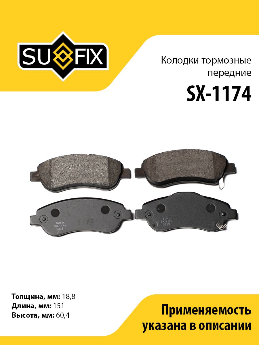 Колодки тормозные передние SUFIX SX-1174. Применение: HONDA CR-V 2.0-2.4 06>. ОЕ: 45022SWWG01; 45022SWWG02 .