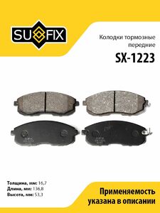 Колодки тормозные передние SUFIX SX-1223. Применение: INFINITI i30 3.0, NISSAN Maxima QX(A32) 2.0/(J30) 3.0 >00/Teana 2.5/3.5 08>. ОЕ: 410600V090; 410602Y090; 410602Y091; 410602Y990; 4106040U90; 4106040U92; 410604L090; 410605Y725; 410605Y790; 4106073L91; 4106073L92; 4106075T90; 4106088E90; 4106089E90; 410608J090; 410609J425; 41060AL590; 41060AM800; 41060AM890; 41060AM891; 41060AM892; 41060AU091; 41060ZB590; AY040NS054; AY040NS057; AY040NS082; D10601FC0A; D10601FE0A; D10601KA1A; D10602Y991; D106088E86; D10609W00BC107; D1060AC20A; D1060AM80B; D1060EM10A; D1060EM30A; D1060EW81AC107; D1060JN00A; D1060JN00AC107; D1061JA00A; D106M2Y990; DA06M2Y991 .