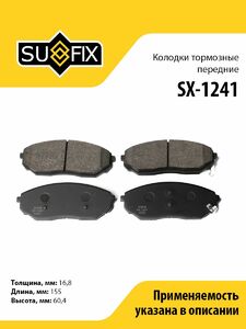 Колодки тормозные передние SUFIX SX-1241. Применение: KIA Sorento 02>. ОЕ: 3EE0058101; 581013EE00 .