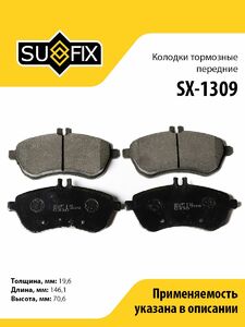 Колодки тормозные передние SUFIX SX-1309. Применение: MERCEDES-BENZ C180-350(W204) 07> / E200K-250D(W211/W212) 06> / SLK200-250(R172) 11>. ОЕ: 0054200820; 0054200920; 0054201520; 0054201220; 0064207120.