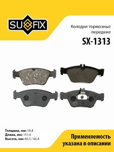 Колодки тормозные передние SUFIX SX-1313. Применение: MERCEDES-BENZ C200K-280(W202/C208) 95-00/E200-300D(W210) 95-00/SLK200-230K(R170) 96-04. ОЕ: 0024204420; 0024209620; 0044200220; 0054204720 .