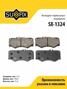 Колодки тормозные передние SUFIX SX-1324. Применение: MERCEDES-BENZ G230-65(W460-W463) 79>, VW LT 2.4D >92. ОЕ: 0014201420; 0034200720; 0044201420; 0054209820; 4604200020; 6014208720; 6015860042; 6015860045.