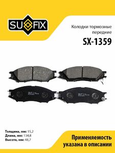 Колодки тормозные передние SUFIX SX-1359. Применение: NISSAN Almera Classic 06> / Micra(K11) 1.5D >03 . ОЕ: 1N073328Z; 1N083328Z; 1N133328Z; 1N143328Z; 1N173328Z; 1N193328Z; 1N213328Z; 1V6T3328Z; 410604M490; 410606N091; 4106095F0B; AY040NS053; AY040NS072; AY040NS073; AY040NS084; AY040NS096; AY040NS100; AY040NS108; MN102192 .