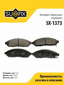 Колодки тормозные передние SUFIX SX-1373. Применение: NISSAN Murano(Z50) 3.5 03> / Navara(D40) 2.5D 05> / Pathfinder(R51) 05>. ОЕ: 41060-EA025; 41060-EB326; DA060-EB326; 41060-ZP00B; 41060-ZP025.