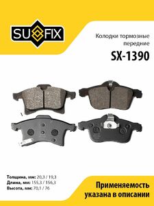 Колодки тормозные передние SUFIX SX-1390. Применение: OPEL Astra H 04> / Meriva 03> / Zafira B 05>. ОЕ: 1605080; 1605099; 1605252; 1605456; 1605992; 1605998; 93176115; 93176429; 93181189; 93186713; 93189698; 93191893; 93192578 .