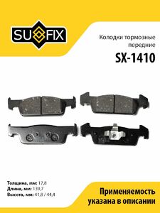 Колодки тормозные передние SUFIX SX-1410. Применение: RENAULT Logan II 1.2 15> / Sandero II 1.2 12>. ОЕ: 410602396R; 410609646R.