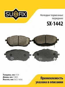 Колодки тормозные передние SUFIX SX-1442. Применение: TOYOTA Auris(E180) 1.3-1.8h 12> / Corolla(E180) 1.33-1.8 13>. ОЕ: 04465-02390.