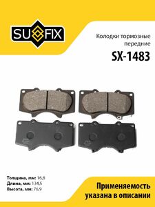 Колодки тормозные передние SUFIX SX-1483. Применение: TOYOTA Land Cruiser Prado(J120/150) 3.0D-4.0 03>, LEXUS GX460 09>. ОЕ: 0446504070; 044650K090; 0446535250; 0446535290; 0446560210; 0446560270; 0446560320; 04465YZZDB; 4605A472; 4605A481 .