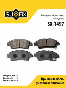 Колодки тормозные передние SUFIX SX-1497. Применение: TOYOTA Yaris(P10) 99>. ОЕ: 0446552030; 0446552031; 0446552040; 0446552041; 0446552070; 0446552090; 0446559010; 0446559020; 04465YZZCJ .