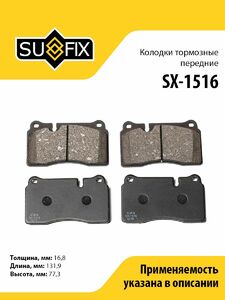 Колодки тормозные передние SUFIX SX-1516. Применение: VW Touareg(7L/7P) 3.0-6.0 04>. ОЕ: 7L6698151E; 7L6698151G; 7L6698151J; 7P6698151C.