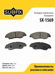 Колодки тормозные передние SUFIX SX-1569. Применение: KIA Sportage 94-03. ОЕ: 0K0453323Z .