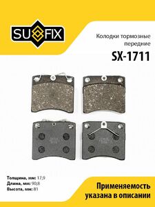 Колодки тормозные передние SUFIX SX-1711. Применение: VW Transporter 4 1.9D-2.8 90-03. ОЕ: 701698151A; 701698151B; 701698151F; 701698151G; 701698151H.