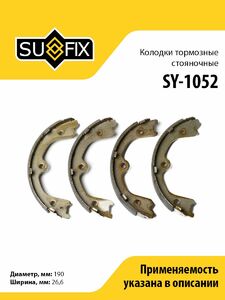 Колодки тормозные стояночные SUFIX SY-1052. Применение: NISSAN Murano(Z50/Z51/Z52) 03> / Pathfinder(R51/R52) 05> / Navara(D40) 07>, INFINITI FX(S50/S51) 03> / M(Y51) 10>.