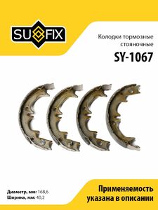 Колодки тормозные стояночные SUFIX SY-1067. Применение: TOYOTA Avensis(T22) 97> / Camry(V10-V50) 91>, LEXUS RX300 98-03.