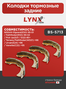 Колодки тормозные задние LYNXauto BS-5713. Для: NISSAN Elgrand(E50) 95-01 / Pathfinder(R50) 99-02 / Pick Up(D21 / D22) 85> / Terrano/Pathfinder(WD21) >96 / Urvan(E24) >96 / Vanette(C22) >95
