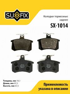 Колодки тормозные задние SUFIX SX-1014. Применение: AUDI 80 84-96 / 100 77-95 / A4 96-00 / A6 97-04.