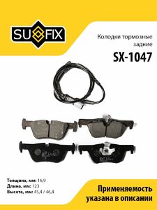 Колодки тормозные задние SUFIX SX-1047. Применение: BMW 1(F20/F21) 11> / 3(F30) 11>.