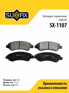 Колодки тормозные задние SUFIX SX-1107. Применение: CITROEN Jumper, FIAT Ducato, PEUGEOT Boxer 2.2D-3.0D 07>.