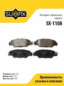 Колодки тормозные задние SUFIX SX-1108. Применение: MAZDA CX-5(KE-KF) 2.0-2.5 12>.