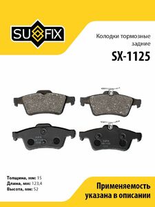 Колодки тормозные задние SUFIX SX-1125. Применение: FORD Focus III 10> / C-Max II 10>.