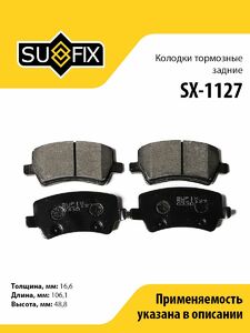 Колодки тормозные задние SUFIX SX-1127. Применение: FORD Galaxy 1.6-2.3 06> / S-Max 1.6-2.5T 06>, LAND ROVER Freelander 2.0 11> / Range Rover Evoque 2.0-2.2D 11>, VOLVO S60 II 2.0-3.0T 10> / S80 II 1.6-3.0T 06> / XC60 2.0-3.0T 09> / XC70 2.4D-3.0T 08>.
