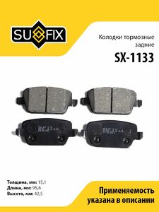 Колодки тормозные задние SUFIX SX-1133. Применение: FORD Mondeo IV 07> / Kuga 08> / Galaxy 06> / S-Max 06>, VOLVO S80/V70 06>.