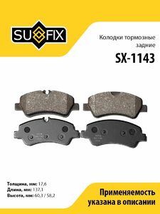 Колодки тормозные задние SUFIX SX-1143. Применение: FORD Transit 2.2D 12> / Tourneo 2.2D 12>.