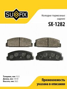 Колодки тормозные задние SUFIX SX-1282. Применение: MAZDA 323 01-04/626 2.0 97-02/Premacy(CP) 99>.