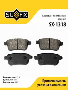 Колодки тормозные задние SUFIX SX-1318. Применение: MERCEDES-BENZ Citan 1.5D 12>, RENAULT Kangoo 1.5D-1.6 08>.