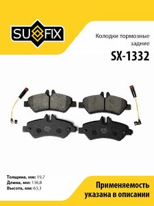 Колодки тормозные задние SUFIX SX-1332. Применение: MERCEDES-BENZ Sprinter 1.8-3.5 06>, VW Crafter 2.0D-2.5D 06>.
