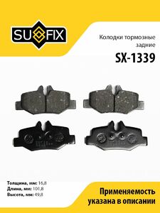 Колодки тормозные задние SUFIX SX-1339. Применение: MERCEDES-BENZ Viano(W639) 2.0D-3.7 03> / Vito(W639) 2.0D-3.7 03>.