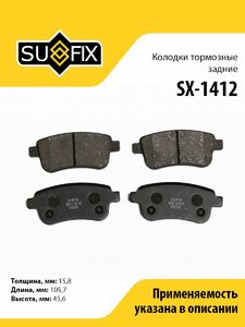 Колодки тормозные задние SUFIX SX-1412. Применение: RENAULT Megane/Scenic III-IV 08>.