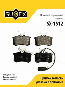 Колодки тормозные задние SUFIX SX-1512