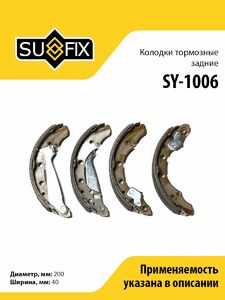 Колодки тормозные задние SUFIX SY-1006. Применение: AUDI 80 1.6-1.9D 86-94 / 100 1.8-2.4D 83-94, SKODA Fabia 1.0-2.0 99> / Felicia 1.3-1.9D 95-02, VW Caddy II 1.6-1.9D 96-00 / Golf III 1.4-2.8 91-97 / Passat 1.6 88-91 / Polo 1.0-1.9D 95> / Vento 1.4-2.0 91-98.