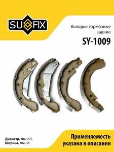 Колодки тормозные задние SUFIX SY-1009. Применение: CHEVROLET Aveo 1.2-1.5 08> / Kalos 1.2-1.4 05>, DAEWOO Kalos 1.2-1.4 02>.