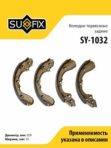 Колодки тормозные задние SUFIX SY-1032. Применение: KIA Sephia 1.5-1.8 93> / Shuma 1.5-1.8 97-04.