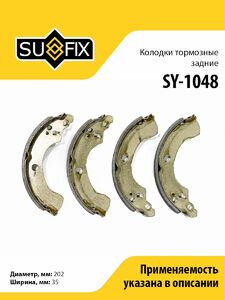 Колодки тормозные задние SUFIX SY-1048. Применение: NISSAN Almera(N16) 1.5-2.2D 00> / Primera(P11) 1.8 99-02.