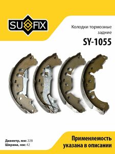 Колодки тормозные задние SUFIX SY-1055. Применение: OPEL Corsa D 1.0-1.4 06> / Adam 1.2-1.4 12>, CITROEN Nemo 1.3D-1.4D 08>, PEUGEOT Bipper 1.3D-1.4D 08>, FIAT Punto 1.3D-1.4 12>.