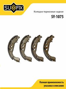 Колодки тормозные задние SUFIX SY-1075. Применение: TOYOTA Yaris(P10) 1.0/1.3 99-06/Prius 00>.
