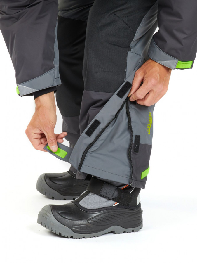 Манжеты на рукавах: внутренние - эластичные неопреновые, наружные- регулируемые Регулируемые манжеты снизу штанин