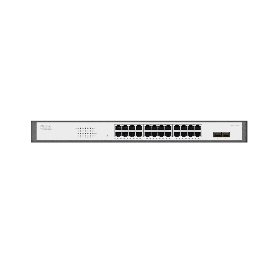PV-link PV-GPOE24S2CL это 26 портовый Web-Smart коммутатор с 24 портами PoE (FE) и 2 портами Uplink (GE), производства компании PV-link. Коммутатор с поддержкой технологии PoE автоматически определяет и подает питание устройствам с функцией РоЕ. Данные и питание передаются по одному кабелю. 24 порта коммутатора поддерживают стандарты IEEE 802.3af/at, на один порт коммутатор способен предоставить до 30 Вт мощности. PoE бюджет 370 Вт позволяет запитать совместимые устройства.