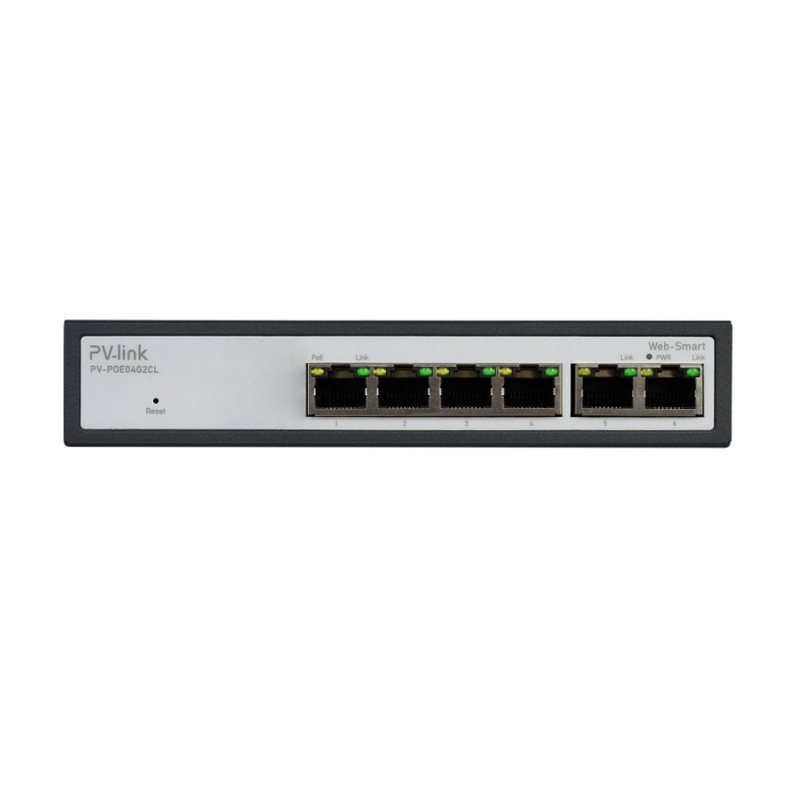 PV-link PV-POE04G2CL это 6 портовый Web-Smart коммутатор с 4 портами PoE (FE) и 2 портами Uplink (GE), производства компании PV-link. Коммутатор с поддержкой технологии PoE автоматически определяет и подает питание устройствам с функцией РоЕ. Данные и питание передаются по одному кабелю. 4 порта коммутатора поддерживают стандарты IEEE 802.3af/at, на один порт коммутатор способен предоставить до 30 Вт мощности. PoE бюджет 60 Вт позволяет запитать совместимые устройства.
