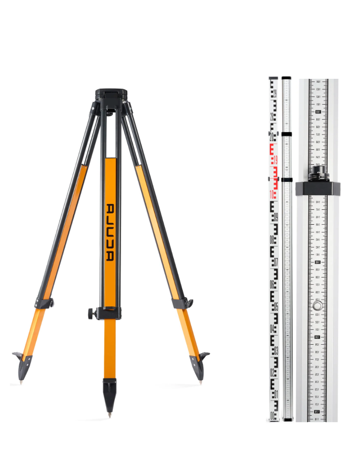 Комплект ACULA Геодезический штатив Geo 12-S (высота 99-173 см, фикс. ножек на винтах, алюминиевый нивелирный, площадка 125 мм, резьба 5/8") + Нивелирная рейка TLS 3 (3м)